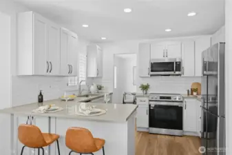 Beautifully maintained 3BR, 2.5BA home on generous 13,504SF lot in the Logan Park area of Lynnwood. Comfortable 1,864SF home w/chef’s kitchen renovated in 2023 w/quartz countertops, new cabinets, stainless steel appliances & breakfast bar. Primary suite w/new bath, dual vanities, walk-in closets & large deck. 2 add’l BDs on upper level. Spacious entertaining patio, level backyard & raised garden beds. 2-car attached garage, driveway/RV parking & storage shed. Recent updates incl Hardiboard siding installed in 2021 & new roof & windows in 2017. Prime location in the Edmonds SD & located just mins from Alderwood Mall, Downtown Lynnwood, I-405 & I-5, this home offers easy access to shopping, dining & commuting, all in a serene daily setting!