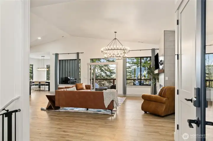 Experience luxurious rural living in this exceptional 3,446-sq-ft home with an 844-sq-ft insulated garage, set on over 16 private acres with breathtaking panoramic views. Currently operating as a turnkey vacation rental that comfortably sleeps 17, this property offers both lifestyle and income potential. The chef’s kitchen features stainless steel appliances and generous space for gathering and entertaining. Thoughtfully designed for multi-generational living or guest accommodations, the 960-sq-ft daylight basement includes a private entrance, bathroom, laundry room, and kitchenette. The oversized garage has been transformed into an entertainment retreat, complete with a swim spa and sauna, adding year-round enjoyment and resort-style appeal. Enjoy serene surroundings with an artisan spring, tranquil pond, abundant wildlife, and no HOA. A high-producing private well delivers an impressive 17 GPM. Beautifully landscaped with fresh sod and a full sprinkler system, this rare property offers privacy, versatility, and convenience just minutes from town. Truly one of a kind and an exceptional opportunity.