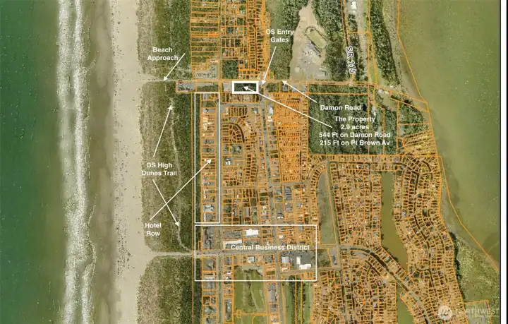 Large vacant commercial parcel located adjacent to the entry gates to Ocean Shores and running on the south side of Damon Road to the WA State Parks Restroom facilities. Property has great exposure from Pt. Brown Ave. when you turn into Ocean Shores and features 544 feet along Damon Road heading to the beach approach. Seller will provide wetland delineation when completed. Zoned B1 Commercial which allows for multiple uses including retail, restaurant, hospitality and multi-family. Think retail along a beach approach road... kite shop, mopeds, hot dog stand, beach play things. Take a look and then let's talk.