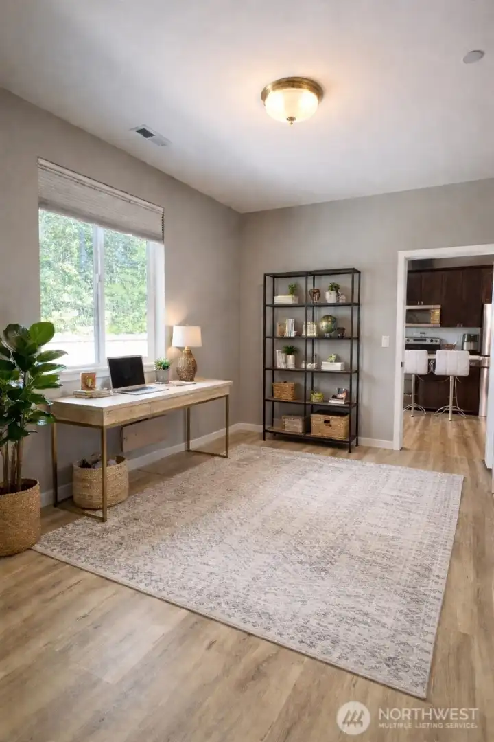 Amazing like new single story Craftsman home located in Magnolia Park a new 22 homesite community with playground, park and walking trails. Home features high 9' ceilings, 3bdr/2ba and bonus room for possible 4th bedroom. Rambler delivers open concept flexibility & luxury finishes all around. Tall entry leads to a generous great room. Elegant chef's kitchen with SS appliances, quartz countertops and big island counter. Primary suite showcases a luxurious en suite bathroom and walk-in closet. AC Heat Pump is Energy efficient for year round comfort. Big 2 car garage, lots of storage space, fully fenced with extended back patio for entertaining and relaxation. Property sits adjacent city green belt and end lot for added privacy. Just Mins to JBLM, Parks, Lakes and shopping.