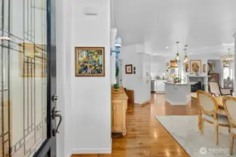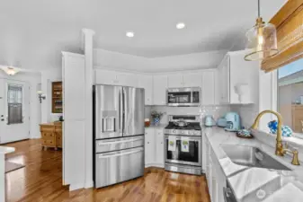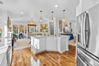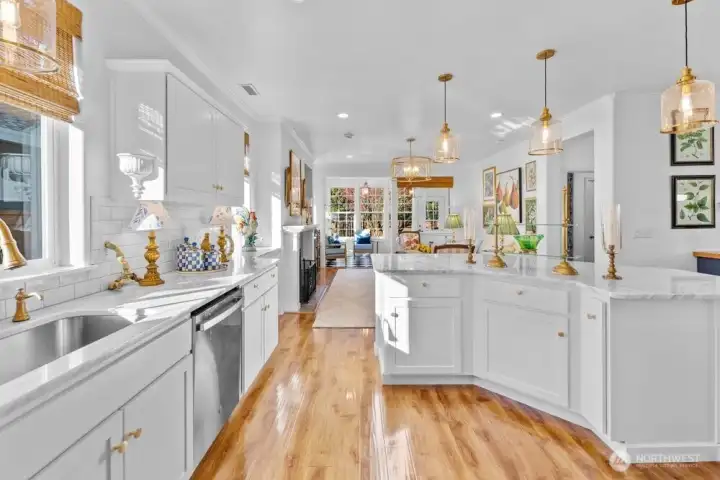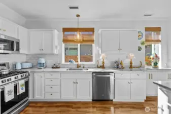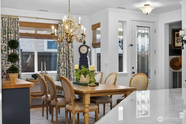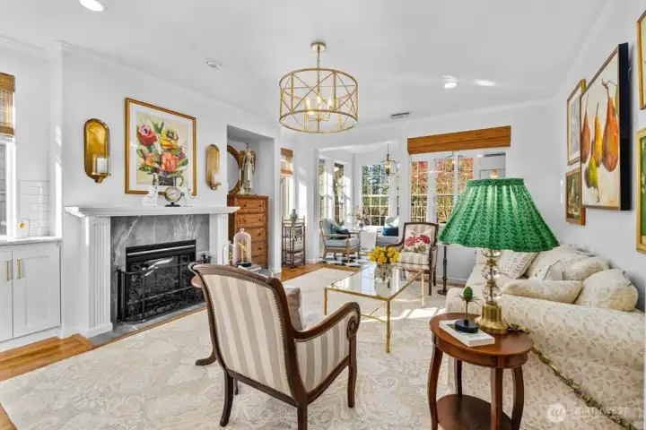 Your gorgeous turnkey home in Jubilee awaits! This stunning open concept floor plan with split bedrooms allows for elegant and gracious living. Crisp white cabinets, slab granite in neutral tones and added pantry complements the 2023 stainless appliance package (gas cooking) for the completely updated chef-style kitchen. Additional seating has been thoughtfully added to the oversized island. An open and inviting living space with large dining and family room is further enhanced by a NW facing sunroom addition (2024) which transitions beautifully from the family room. With multiple windows, insulated, heat/AC system, this flexible transition room is the homeowners most cherished space in home for entertaining indoors and out. Just outside the sunroom are stairs and a railing which leads you to a private garden, lovely in every season. Bathrooms have been updated with new vanities and complementary marble counters. Primary bedroom faces west with views of the home’s private garden and greenbelt. Throughout the home are curated touches: Swedish design wallpaper, built ins with updated lighting makes this home remodel magical. Home has a serviced furnace and A/C, new water heater in 2025 and quite possibly the newest roof (30 Year) in community, installed Jan 2026. Crown molding of abound. Exterior painted in 2022. A/C entire home. Pride in home ownership is very apparent. Jubilee Comm. A. incl Golf, Tennis, indoor pool, & beach access. Preinspected