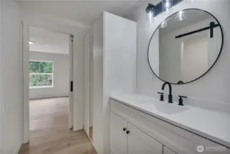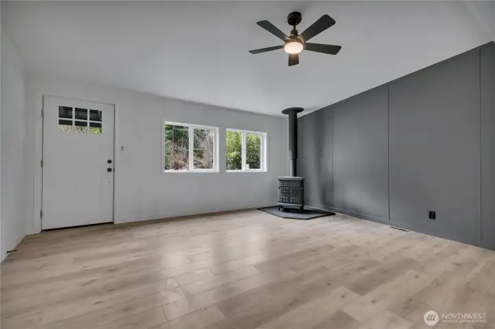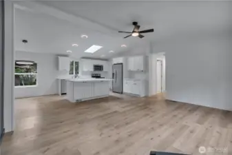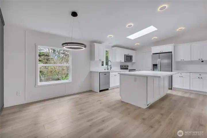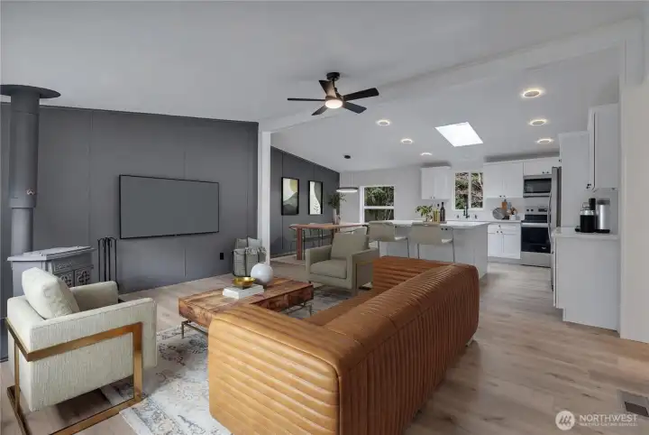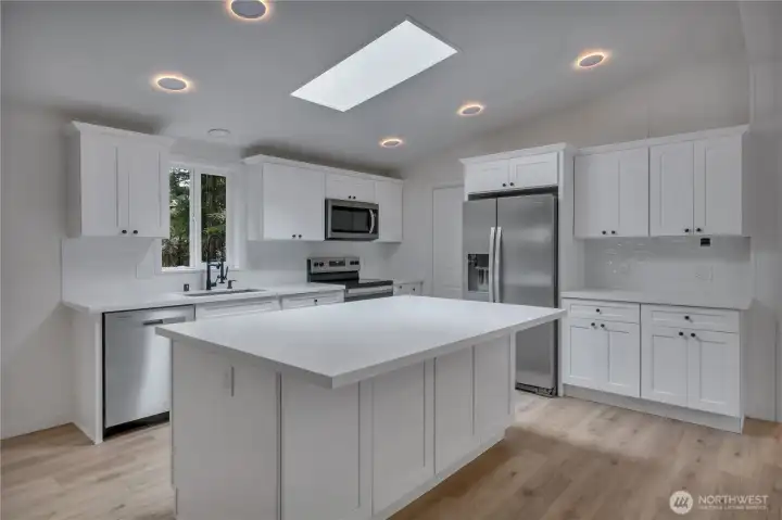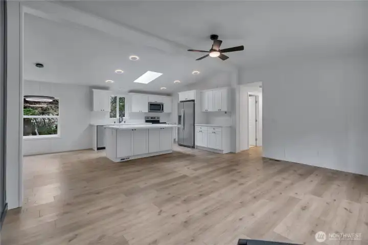 Stunning remodeled home offering 3 bedrooms, 2 baths, and approximately 1,400 sq ft of beautifully updated, single-level living. Features include newer roof, a brand-new kitchen with quartz countertops, stainless steel appliances, new flooring throughout, open-concept layout, and custom tile work in the bathrooms. Situated on just under one level acre with meticulous landscaping, two access points, and an oversized storage shed. A rare combination of space, privacy, and modern finishes.