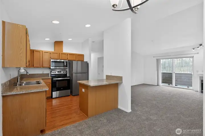 Back on market. Prior buyer did not proceed after HOA review; resale package available in supplements. Move-in ready, beautifully updated 3-bedroom, 2-bath top-floor end unit with vaulted ceilings and abundant natural light. This 1,163 sq ft condo features an updated kitchen with stainless steel appliances, open living and dining areas, and access to a private balcony—perfect for summer evenings. Cozy gas fireplace, primary suite with ¾ bath (full-size shower), new flooring and tile, new wall heaters with programmable thermostats, and updated lighting and fixtures. Full-size washer and dryer included. One designated parking space plus one-car garage. Gated community conveniently located near freeways, Boeing, Paine Field, golf, and the Mukilteo School District. VA assumable loan opportunity at approximately 2.625% interest for qualified VA buyers, subject to lender approval and substitution of entitlement. Significant equity opportunity. Full HOA resale certificate, CC&Rs, budget, reserve study summary, insurance information, and recent meeting minutes uploaded in supplements for buyer review prior to offer. No rental cap offers outstanding flexibility for investors or future rental use. Strong reserves, gated entry, commuter access, competitive pricing, and rare low-rate VA assumption potential create exceptional value.