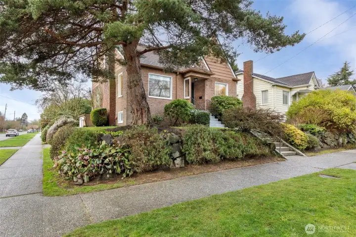 Welcome to this Tudor on a sunny corner lot in the highly sought-after Loyal Heights neighborhood of Northwest Seattle. Timeless charm meets updates throughout this inviting home, offering a balance of classic architecture and modern comfort. The formal living room showcases coved ceilings, original architectural details, and a wood-burning fireplace, creating a welcoming gathering space. The updated kitchen offers quartz countertops, stainless steel appliances, a gas range, and generous counter and cabinet storage, ideal for daily living and entertaining. The dining room features custom built-in book and display shelving that adds character and functionality. Two light-filled bedrooms and an updated full bath complete the main level, offering flexibility for guests or work-from-home needs. Upstairs, the spacious primary suite includes abundant closet space, a beautifully remodeled full bathroom, and two additional bedrooms filled with natural light. The unfinished lower level provides a garage, laundry area, and expansive spaces, perfect for future living space, storage, hobbies, or added equity. Updated plumbing throughout offers peace of mind. Enjoy a short stroll to neighborhood cafes, bakeries, parks, and play fields, plus easy access to Golden Gardens Park, Shilshole Marina, and the vibrant Ballard shopping and dining district, with convenient routes to downtown Seattle make this an exceptional location. This home blends character, comfort, and lifestyle. Pre-inspected!
