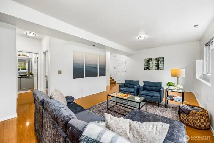 Welcome to this beautifully updated 4-bedroom, 3-bathroom home in Lynnwood, offering 2,164 sq ft of thoughtfully designed living space across two levels. The main level flows seamlessly from a bright entryway into the dining area and kitchen, featuring a breakfast bar and plenty of counter and cabinet space, all connecting to a cozy living room with gas fireplace and glass door leading to the deck. The primary suite includes a double-sink vanity, soaking tub, and walk-in shower. Two additional bedrooms and a full bath complete the upper level. The finished lower level offers a spacious bonus room, an additional bedroom, full bath, and dedicated laundry room. Recent updates include replaced windows, new dishwasher, and new sliding glass door. A fenced backyard and attached 2-car garage round out this move-in-ready home.
