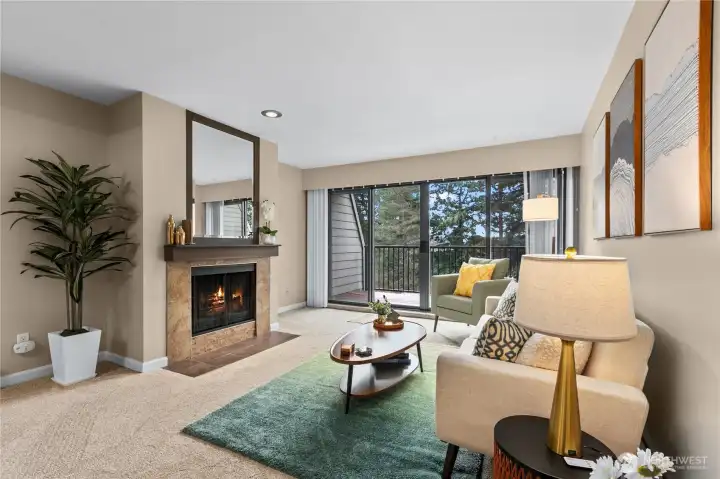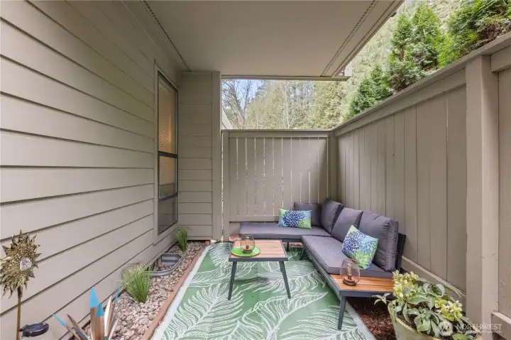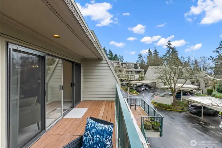 Stunning, updated 2-bed, 2-bath home with 2 reserved parking spots, No rental cap, No special assessment in the heart of Redmond! Enjoy rare privacy and two private outdoor living spaces. An oversized south-facing deck with great views, plus a fenced front patio—perfect for summer entertaining. Rare zero-step entry adds to everyday convenience and accessibility. Recently refreshed with new carpet, LVP flooring, and fresh interior paint. Light-filled living room features expansive windows and flows seamlessly to the main deck. Spacious primary suite includes an en-suite bath and ample storage throughout. Well-run HOA covers water, sewer, and garbage and has no rental cap. Pre-inspected with no special assessments. Prime location is less than a mile to Downtown Redmond dining, shopping, parks, and the light-rail station. Award-winning Lake Washington schools. Two reserved parking spaces—one covered carport plus one uncovered—and plenty of guest parking. Privacy, convenience, and unbeatable walkability—don’t miss! All designer furnishings and staging items are brand new and are available for purchase.
