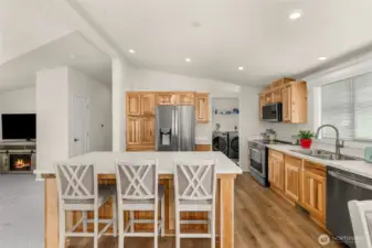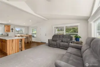 Thoughtfully designed and set on a spacious, low-maintenance lot in desirable Ocean Shores, this home offers easy access to a nearby Pacific Ocean beach approach—perfect for spontaneous sunset walks and salty sea air. A welcoming covered front porch sets the tone, while full RV hookups, generous parking, and a convenient storage shed add everyday flexibility and function. Step inside to soaring vaulted ceilings and oversized windows that flood the open-concept living space with natural light, highlighting the home’s modern upgrades, smart layout, and abundant storage throughout. The bright, stylish kitchen flows effortlessly into the living and dining areas—ideal for entertaining or cozy coastal nights in. Retreat to the private primary suite featuring a walk-in closet and an oversized walk-in shower, creating a true at-home escape. Located close to town, shops, dining, and the beach, this move-in-ready 2025 home delivers the perfect blend of comfort, style, and laid-back coastal living.