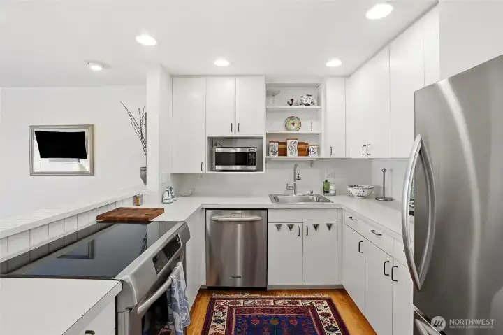 Live on the water and gaze at Mt. Rainier. Quiet, private outlook from this serene condo on Lake Washington in Madison Park with pool and boat storage. Second bedroom has been opened up to take full advantage of the fabulous natural light and peaceful views from your lanai where you can watch birds, otters and boats glide by. Launch your kayak from the private dock and still be within blocks of groceries, shops and restaurants. Enjoy in-unit laundry, gleaming hardwoods, plenty of storage and a great floorplan that includes a complete bedroom suite.