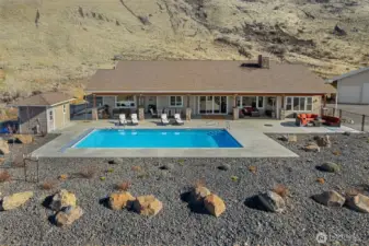 This meticulously maintained custom residence presents an unparalleled living experience, seamlessly transitioning indoor and outdoor living spaces with an in-ground pool steps away creating the serene feel of a private oasis. The home is strategically positioned on 18+ secluded acres, the property absorbs breathtaking expansive valley views while maintaining utmost privacy, nestled at the base of distinctive basalt cliffs. As a single-level home showcasing impeccable craftsmanship, refined finishings that will be evident throughout upon entry, with many exquisite details that set this home apart. The open-concept floor plan, featuring soaring vaulted ceilings and the elegant chef's kitchen with high-end appliances create an entertainer's dream. The open concept living and dining rooms blend sophistication and comfort surrounded by floor to ceiling windows to absorb the expansive views and beyond. The spacious primary suite designed for relaxation with a spa inspired bathroom with a no step tiled shower, soaking tub and oversized closet with custom shelving. The detached finished 40'x 45' heated shop with RV hookups perfects the lifestyle for the outdoor enthusiast, hobbyist or one desiring independent extended stays. This distinctive property on manicured grounds, without duplication will turn your dream home into a reality.