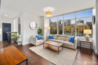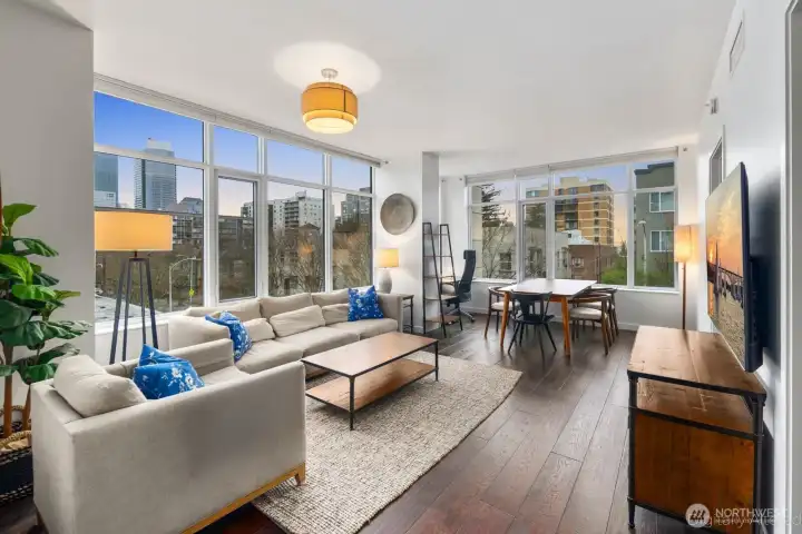 Set within LUMA, a full-service community in the heart of First Hill, this expansive corner one-bedroom offers nearly 1,000 square feet of light-filled living. The open layout features wide-plank wood floors, custom built-ins, a gas kitchen, high ceilings, and full-size laundry, with large windows framing city views throughout. LUMA residents enjoy concierge service, a fitness center, secure parking, and a rooftop lounge with dining spaces and skyline views. A Walk Score of 99 and no rental cap add flexibility and ease