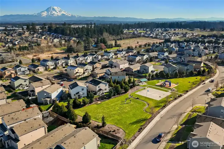 THIS IS THE ONE! A RARE opportunity to own a home that is TRULY better than new. This 4 bedroom + office/den home is perfectly positioned at the end of a quiet cul-de-sac. This exquisitely remodeled residence offers exceptional privacy, NO neighbors behind, and a breathtaking, UNOBSTRUCTED view of Mount Rainier! The main level is designed for refined living and effortless entertaining, anchored by rich hardwood floors, soaring ceilings, and a cozy gas fireplace. The chef-inspired kitchen is both elegant and functional, featuring granite slab countertops, soft-close cabinetry, undercabinet lighting, a large statement island and brand-new appliances. You can also use the main-level office/den as a 5th bedroom! Upstairs, retreat to the luxurious primary suite, a true sanctuary with ample space, exceptional storage, and a spa-like five-piece primary bath. Fully remodeled interior, fresh designer paint, new plush carpeting, and an on-demand hot water heater. Storage is UNLIMITED throughout the home, both rare and highly desirable. Step outside to a newly refreshed backyard oasis featuring an apple tree and gardening space, creating a serene and picturesque outdoor escape. Whether enjoying morning coffee, evening sunsets, or summer BBQ's, the Mount Rainier views are simply unforgettable. Ideally located mere minutes from JBLM, this home offers luxury and comfort in perfect balance. Move-in ready, meticulously updated, and undeniably exceptional! Go see it TODAY before its gone!