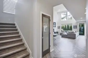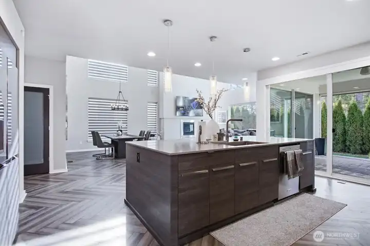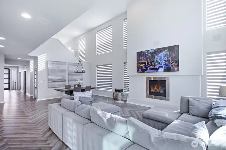 Architectural presence meets modern Northwest elegance in this impeccably curated residence at McCormick Woods. From bespoke lighting to striking herringbone-pattern flooring, every detail reflects intentional design and elevated comfort. A dramatic two-story great room anchors the home, framed by expansive windows with custom remote-controlled treatments and seamless indoor-outdoor flow to the covered living space with fireplace and hottub. The chef’s kitchen showcases sleek cabinetry, statement island seating, and refined finishes that blend contemporary style with a subtle mid-century influence. Dual main-level offices provide exceptional flexibility for today’s professional lifestyle. Upstairs, retreat to a serene primary suite featuring spa-inspired bath amenities and a boutique-caliber dressing room. Set within a premier golf community offering clubhouse dining, parks, trails, and athletic courts — with convenient access to ferries, PSNS, and Bangor — this home delivers both prestige and practicality.An exceptional offering for those who value design, scale, and the art of living well.