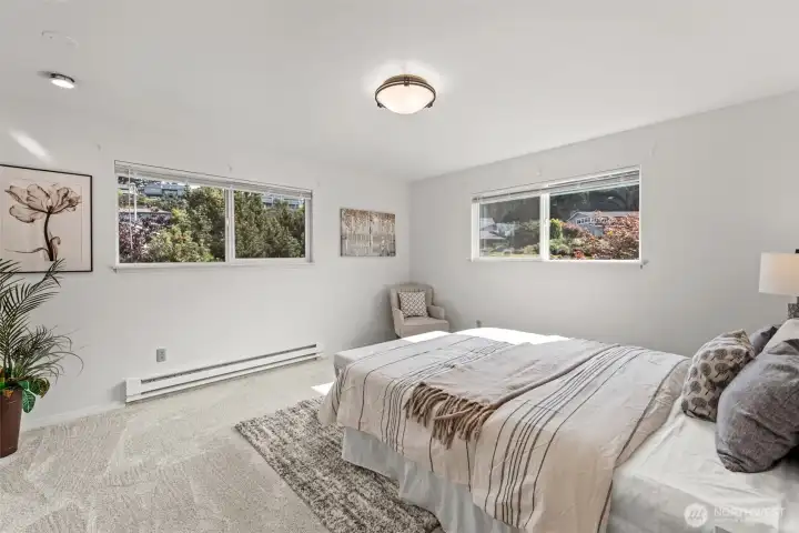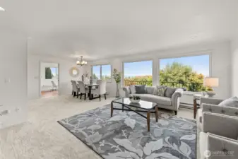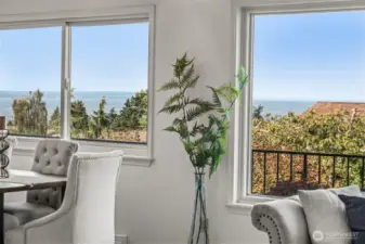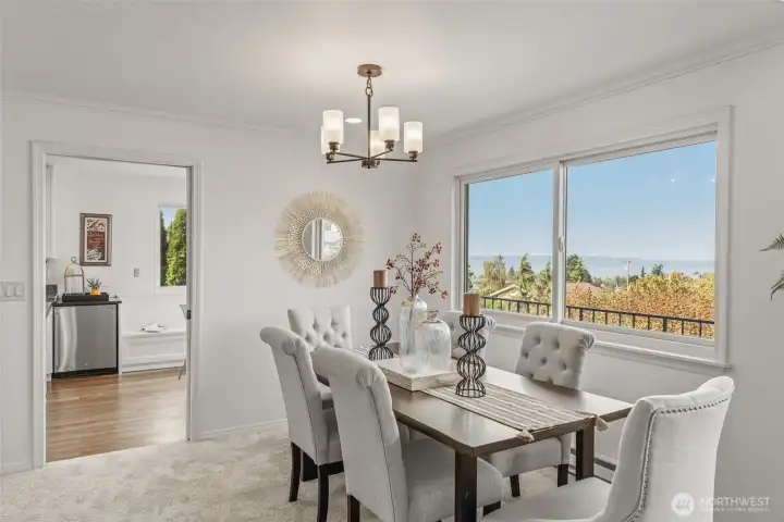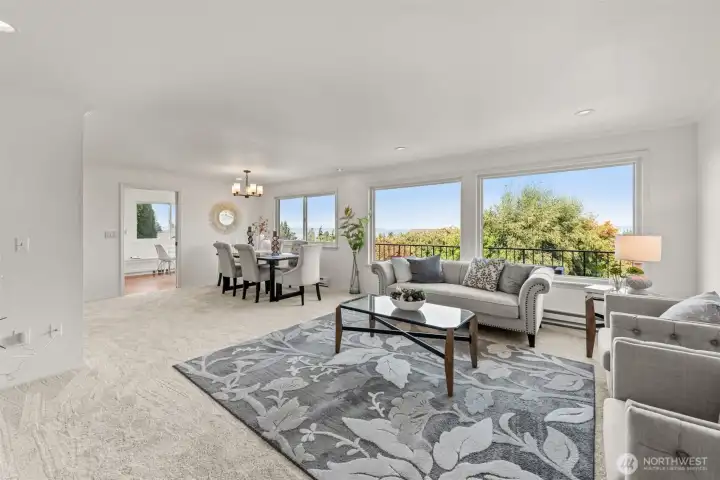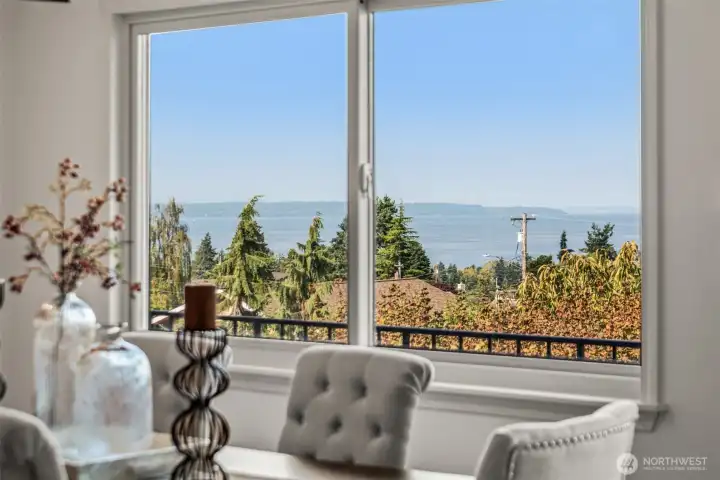 Panoramic 180° Puget Sound views set the stage for this beautifully positioned Emerald Hills home. Light-filled living and dining spaces open seamlessly to a spacious view deck—ideal for entertaining, quiet evenings, or working from home with an inspiring backdrop—while the chef’s kitchen and private primary suite also enjoy stunning water vistas.The lower level offers exceptional flexibility with a generous family room and a well-appointed guest suite, perfect for visitors, multi-generational living, or a private home office or studio setup. Recent whole-home improvements include all-new interior and exterior paint, brand-new carpet throughout, and a professionally completed voluntary seismic retrofit with enhanced foundation connections—providing both comfort and long-term peace of mind.Car enthusiasts, hobbyists, or adventure-seekers will appreciate the 2-car main-level garage plus an oversized 4-car lower garage—ideal for RV or small boat storage, along with abundant storage and a beautifully landscaped garden space. A rare combination of sweeping views, flexible living spaces, and meaningful upgrades—this Emerald Hills home is move-in ready and built for confidence.
