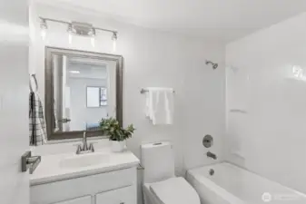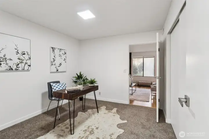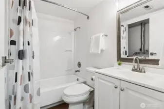 Beautifully designed garden-level condo featuring a spacious 3 bed, 2 bath layout with fresh, 2026 thoughtful updates throughout. Light and bright living spaces are enhanced by bamboo floors, bold design details, and a cozy wood-burning fireplace that anchors the living room. The updated kitchen offers quartz countertops, brand new stainless steel appliances, and flows seamlessly into a dedicated dining area with built-in cabinetry for extra storage. Both bathrooms have been refreshed, new carpet along with new washer and dryer, adding everyday comfort and convenience. Step outside to a private patio off the living room, complete with an additional storage closet. Generously sized rooms provide flexibility, while two off-street parking spots and extra storage are a rare bonus. Set in a great Bellevue location close to shopping, dining, parks, and amenities.