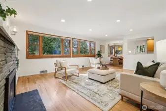 Hidden gem in desirable Lake Forest Park. Set on a private, nearly ¾-acre lot, this home offers open-concept main-level living with hardwood floors, new lighting & updated kitchen w/tile floor, newer gas range w/pot filler & dishwasher. Spacious living room features gas fireplace & wall of windows with serene woodland views. Expansive wrap-around deck & new fencing are ideal for entertaining. Lower level w/separate entry includes large family room with built-ins—great MIL or Airbnb potential. Newer roof & gutters, gas furnace, PEX main water line. Ample parking incl. RV. Shoreline Schools. Easy access to Seattle & Bellevue & nearby light rail. Also -- Deeded ownership share in LFP Civic Club - a Lake Washington waterfront park, dock, boat ramp and community room located a short walk down Ballinger Way.