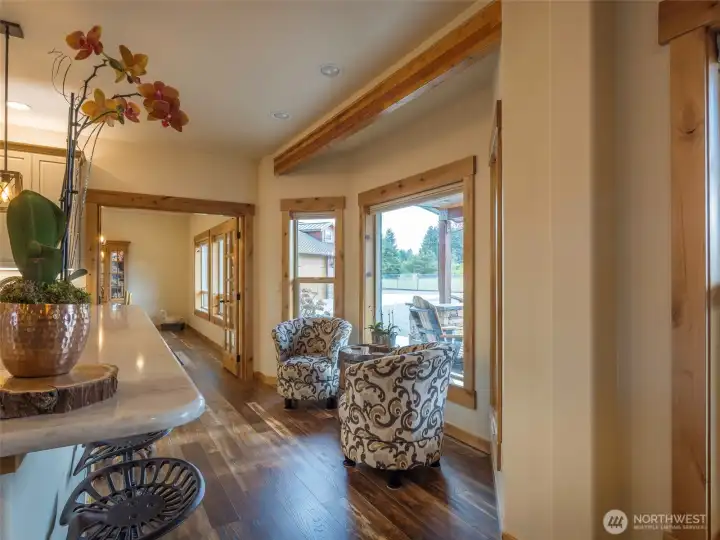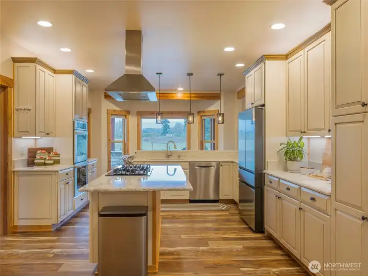IMMACULATE property that has it all, for the most discriminating Buyers. Attention to every detail: chef's kitchen with propane cooktop and double ovens, large organized pantry, plenty of counter space, large formal dining area, and spacious family room with wet bar; a home great for entertaining! Huge primary bedroom with a walk-in closet that has lovely built-ins, a bath with character, and all the extras: heated floors, double sinks, soaking tub, separate shower, and toilet room. New wood laminate flooring throughout. Outside, there's a 33' x 95' garden space, thornless blackberries and raspberries, fruit trees: cherries, fuji apple, pears and more apples, a "chicken palace" (hard to call it a coop) and a stick-built greenhouse for ripe tomatoes, veggies & flowers year-round. Ready for you to move right in and enjoy the life in sunny Sequim's Blue Hole.
