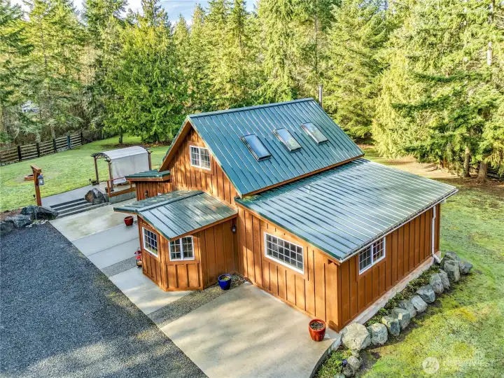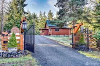 Find country serenity and city convenience at this beautiful 2.46 acre property. Tucked into a private, quiet cul de sac just minutes from downtown Sequim, this fully fenced and electronically gated homestead offers spectacular park-like grounds and a charming cabin. The peaceful property backs to Johnson Creek and includes an established orchard and berry patch, with plenty of room for a large vegetable garden. The cozy cabin is highlighted by special aesthetic features throughout, including stacked river rock and beamed ceilings. The comfortable living room is anchored by a wood-burning stove. The kitchen offers great storage and prep space, and the adjacent dining area enjoys lots of natural light. The large main floor bedroom includes a walk-in closet, and upstairs is a versatile loft-style bedroom/office. Exterior features include metal roof, wood siding, storage shed, RV hook-up pad, plus parking space for several vehicles. The covered patio/fire pit area is perfect for entertaining or just watching your dog romp happily around this pet paradise. Well-maintained, no HOA. Surrounded by recreation activities including the John Wayne Marina, Olympic National Forest trailheads, and the Dungeness Spit. Come see this captivating property today.