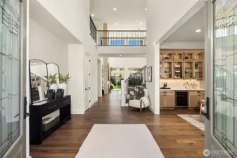 Murray Franklyn Homes presents the sought-after "Knoxville" plan in the South Rose Hill Community & Lake WA SD. This home blends elegance and thoughtful design, beginning with a dramatic open-to-above foyer that flows directly into the adjacent dining room. A spacious main-floor den and a private guest suite with its own bath provide flexibility and comfort. The expansive family room is filled with natural light, with large sliders opening to two covered patios ideal for year-round outdoor living. The gourmet kitchen features a generous island, walk-in pantry, and a separate PREP kitchen for added convenience. Upstairs, the primary suite offers a serene retreat with an en suite bath and a large walk-in closet. Three additional bedrooms each, with direct bath access, ensure comfort for all, complemented by a second-floor laundry room for added convenience. A versatile recreation room with a wet bar creates the perfect setting for entertainment, while open-to-below areas enhance the home’s sense of volume and sophistication. 3 garage includes E/C charger and ample room for storage.