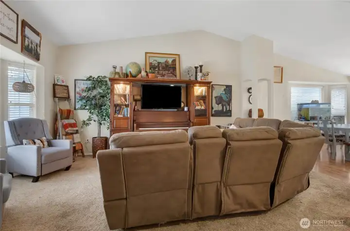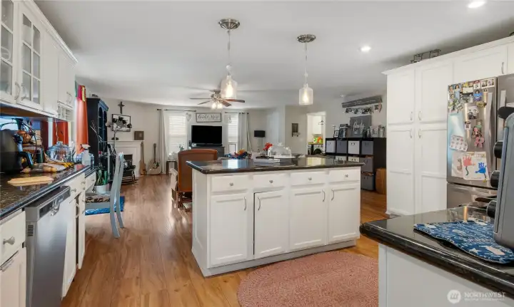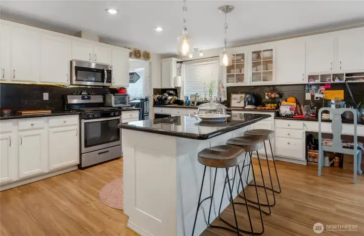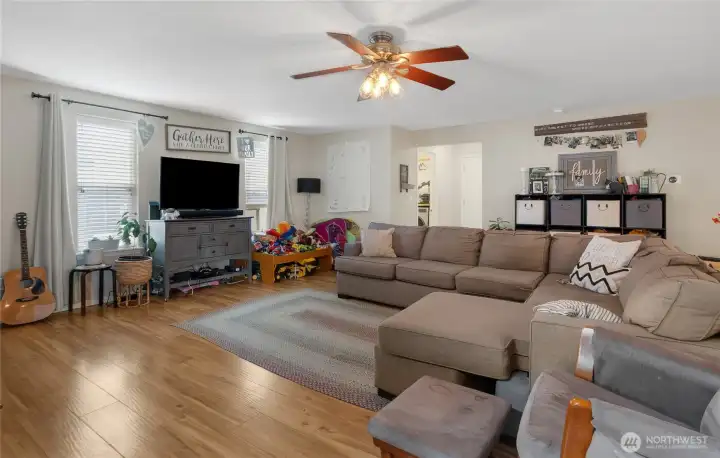 Priced 25k+ below tax value!! Instant equity!! This home built in 2000 & thoughtfully updated for comfortable modern living. Situated on .13 acre parcel, the property offers a peaceful, private atmosphere with plenty of outdoor space for gardening, recreation, or future expansion. Inside, approximately 2,433 square feet of living space offers a functional layout perfect for living. The main level features an open floorplan that seamlessly connects the living room, dining area, and kitchen—ideal for daily life and entertaining. Large windows fill the home with natural light and provide serene views of the surrounding grounds. Backyard boarders Greenbelt. The kitchen boasts ample cabinetry and workspace, with room for casual dining. Spacious living areas accommodate gathering spaces for guests. This home includes 4 bedrooms, providing flexibility for a home office, guest rooms, or hobby spaces. The primary suite offers a private retreat with its own bath. In total, there are 2 full bathrooms & a 1/2, designed for convenience & comfort. Additional features you might expect in a home of this size and age include a 2 car garage, dedicated laundry room, & storage throughout. Located in Olympia, this property offers local amenities, access to schools, & parks. Walkable w/separate entrances to Centennial Elm & Olympia HS Farming Prog. Whether you’re looking for space, privacy, or a blend of both, this home has something to offer your lifestyle.