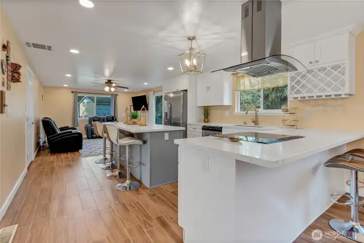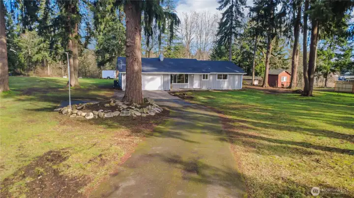 Modern day living with room to breathe! Experience the best of both worlds in this stunning, turn-key rambler situated on a rare, level 1-acre lot. Completely reimagined from the studs up, this home features a bright, open-concept layout perfect for modern living. Meticulously remodeled 3-bedroom, 2-bathroom home with 1,690 sq. ft. of seamless, single-level living space designed for gathering & entertaining. The airy designer kitchen with centerpiece island shines with quartz countertops, soft-close Shaker cabinets & stainless appliances, bringing the spacious living & family rooms together. Impressive primary with ensuite & two additional rooms. Step outside to your private oasis—a full acre of usable land with no HOA restrictions. Whether you dream of a massive shop, a hobby farm, or just ultimate privacy, this property delivers. Upgrades include: NEW roof, kitchen & bathrooms, A/C, porcelain & ceramic tile floors, gutters, and fresh interior & exterior paint. The home backs to a greenbelt for added privacy and offers an incredible amount of storage, parking, and additional building space. Plenty of room for all your toys, RVs & outdoor hobbies. Located just minutes from Spanaway amenities, Joint Base Lewis-McChord (JBLM), and Fredrickson Industrial Area, one of the largest industrial hubs in Pierce County with major anchors including Boeing, Amazon, Ikea, Whirlpool, Best Buy & many more! The perfect blend of suburban convenience & rural tranquility. Welcome home!
