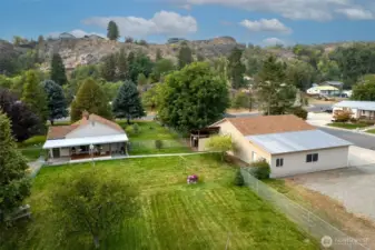 Step into seamless living in this lovingly maintained & updated 1948 gem, where pride of ownership shines throughout. This 3-bed, 1-bath home offers tranquility & character in equal measure. The large picture windows flood the space w/ natural light! SS appliances- 2 wood burning fireplaces. Step outside to a covered patio that opens to a flat, manicured, park-like double lot with mature landscaping—ideal for entertaining or peaceful solitude. Private well w/ sprinkler system serves outside & city water serves the house. A 1-car garage, massive 4-bay shop & tons of parking provide room for all your hobbies & vehicles, making this property a rare find that blends character, convenience & space in one inviting package.