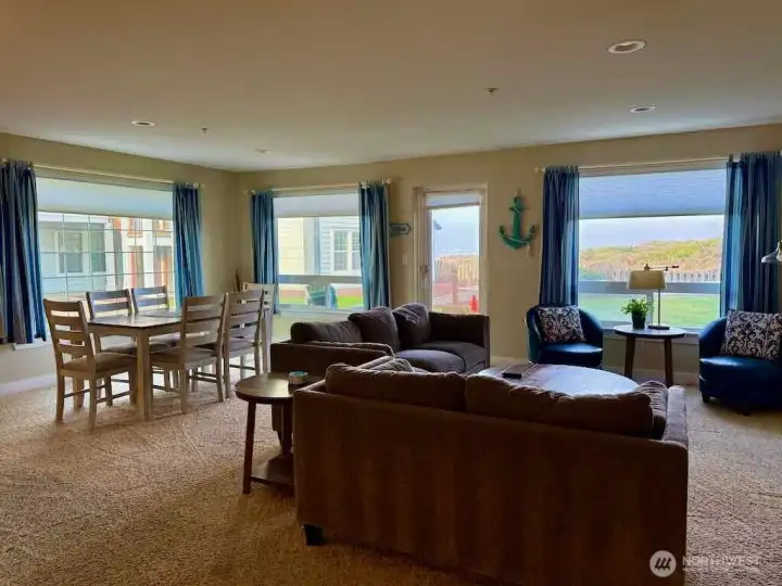 Westport by The Sea ground floor unit 910, 2 bedroom & 2 full baths with an Ocean View ! This unit is one of the few bottom floor units with an Ocean view. An extra large end unit with 1272 SQ.Ft . Completely furnished . Granite counters throughout. Primary bedroom has a primary bath with a granite surround jetted tub. 2ndary bedroom has a bunk bed with a queen and twin ( top bunk ) plus a window seat and bookshelf with desk area. Great room , living room area has an electric fireplace , with comfy furniture. Kitchen has lots of cabinets ,granite counters with eating bar as well as dinning area. This area has a nice Ocean view and is an easy walk to the beach. This has been a nightly rental , sleeps six ( rollaway bed in closet.) All appliances are included. Common area includes the Clubhouse with meeting area, gym, outside swimming pool and hot tub . Also a golf putting green , basketball court and swing set area. Access to the beach and walking /riding trails . Come and enjoy all that Westport has to offer. Easy access to the marina for fishing or shopping . Close to all amenities. 17 miles of beaches ! Enjoy the sunsets, go clamming , kite flying or just stroll the beach without a care in the world ! Unit 910 is priced to sell and is ready for you to come and relax and enjoy !