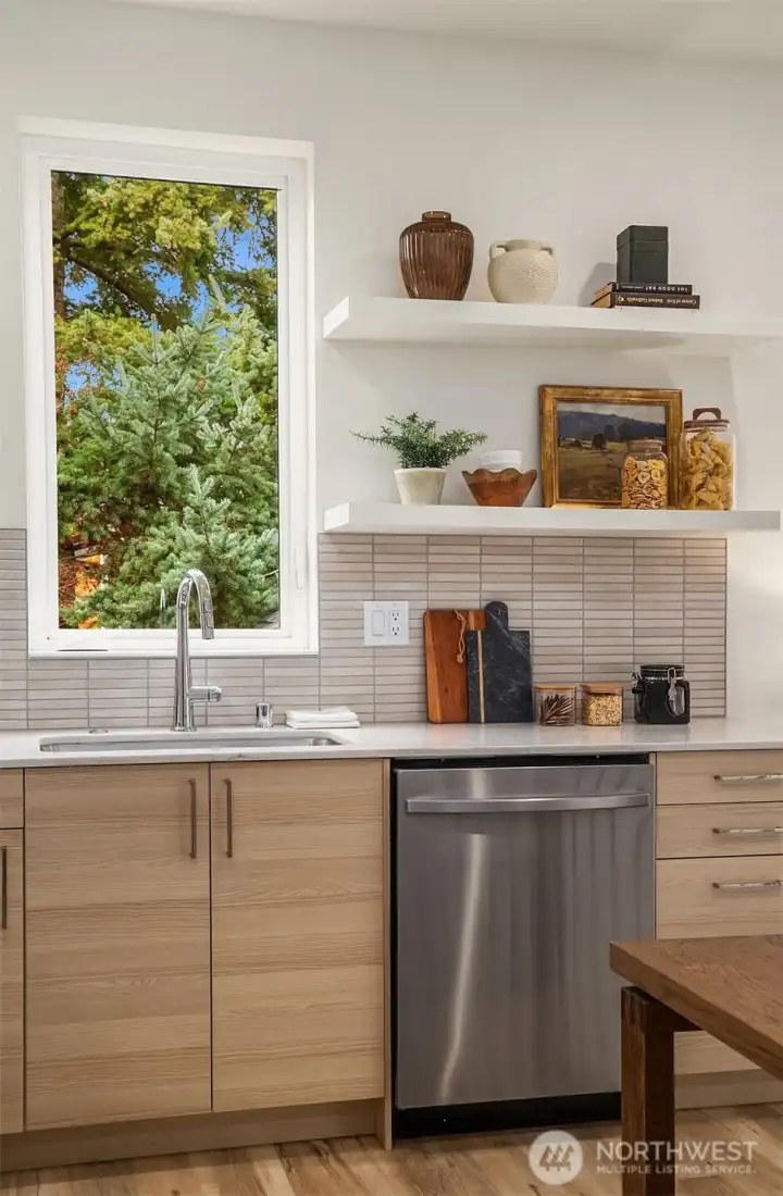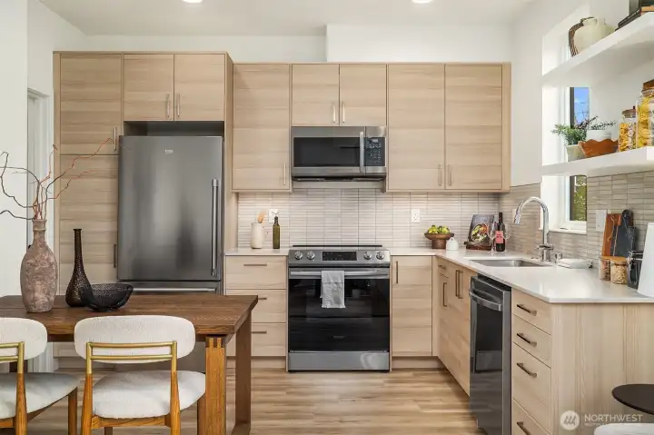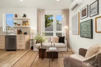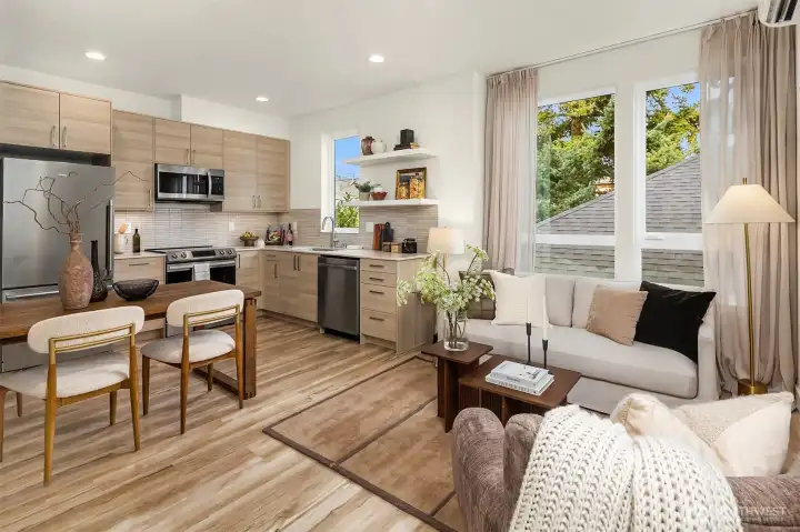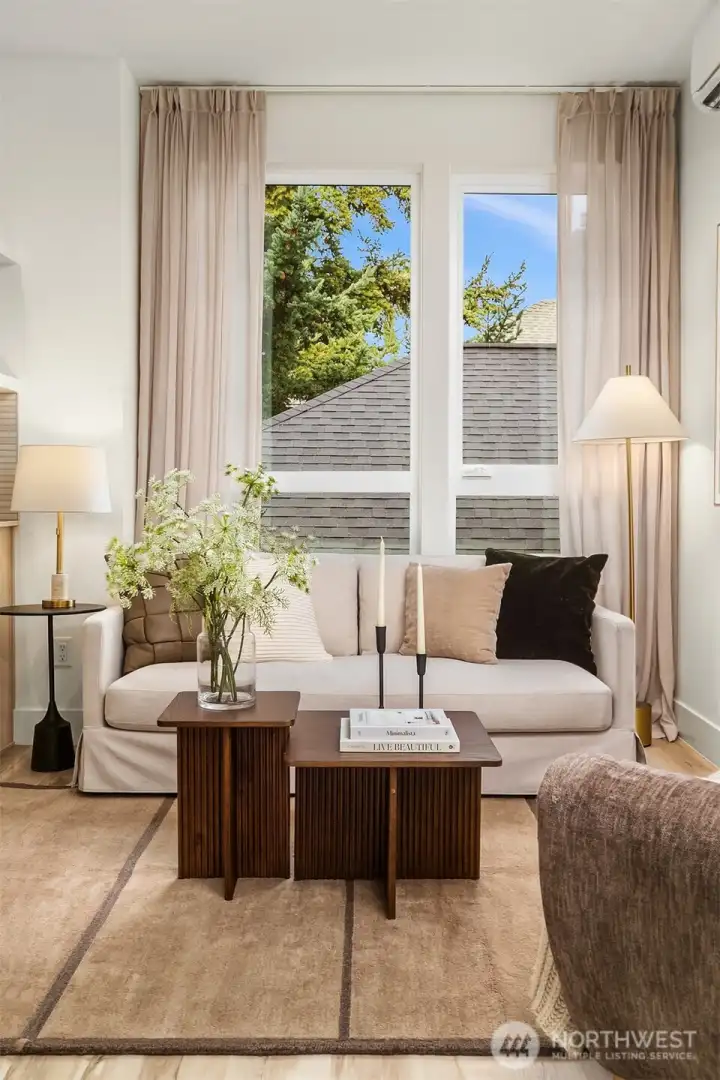 A beautifully designed pied-à-terre situated in the heart of Queen Anne. Thoughtfully curated for effortless, low-maintenance living, the space blends intentional design and function with quiet sophistication. Perfectly positioned between beloved Macrina Bakery, Ken's Market, and iconic Targy’s Tavern, the location delivers the best of urban living at your doorstep. Wake up to the sunrise peeking over the Cascades from your primary suite and unwind on your private rooftop deck -- ideal for entertaining, dining al fresco, or simply soaking in the radiant sunsets over the Olympic Mountains. The primary bedroom features a luxurious ensuite bathroom with heated floors, walk-in shower, and walk-in closet. The lower level offers a second bed & bath with secure separate entrance offering rental potential. The main living space is warm and inviting with striking tile, floating shelves, quartz counters, and SS appliances. Custom Shade Store blinds, spacious laundry room, designated storage, and off-street parking elevate convenience and comfort. An urban oasis for those who value thoughtful design, refined materials, and a timeless sense of ease—this is city living at its best.