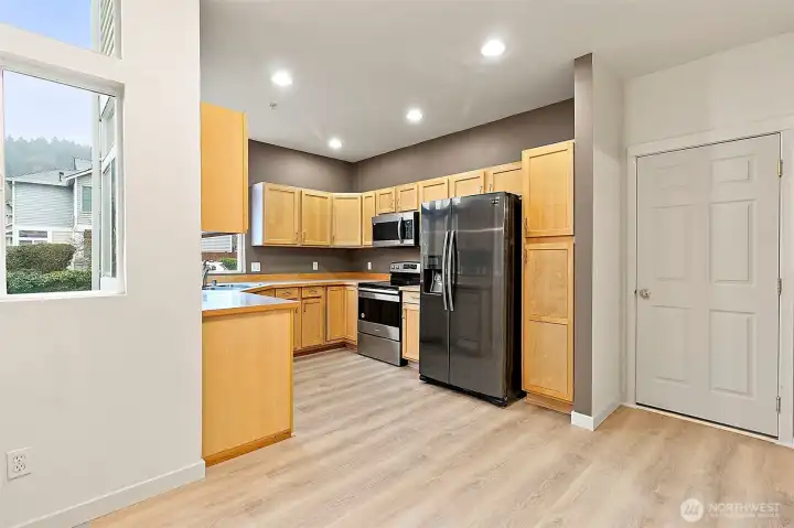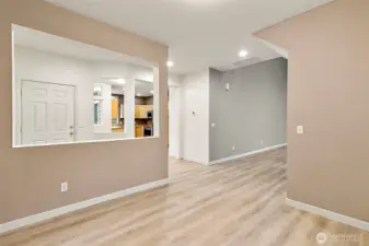 Check out this "condo" that lives like a detached home! The first thing you'll notice when you arrive is the extremely low maintenance front yard. Synthetic grass both in front and back. No mowing!! Once you enter, you'll be captivated by the 20' cathedral ceilings in the living room, highlighted by the large windows letting in so much natural light. New floors throughout the home. LVP downstairs and new carpet up. This home has 3 bedrooms upstairs including the primary suite with attached bath. LOCATION LOCATION LOCATION!! 3 minutes from I-5 and 5 minutes to downtown Kent. Priced aggressively so make your appointment to see it today!