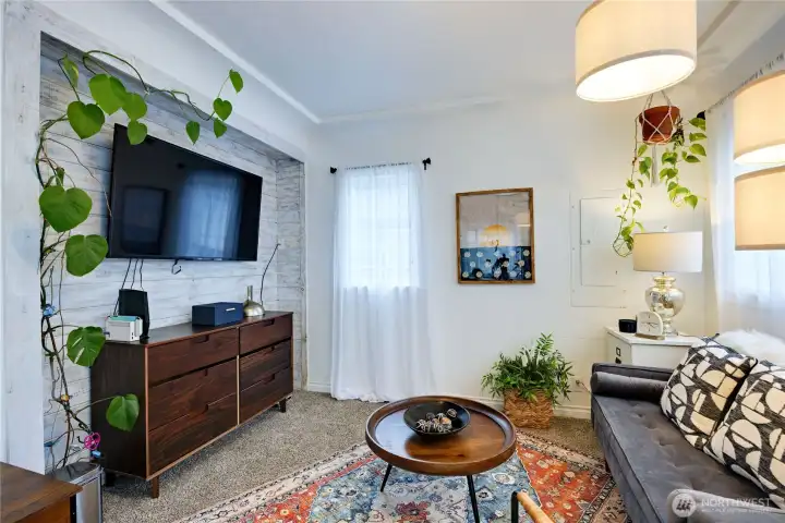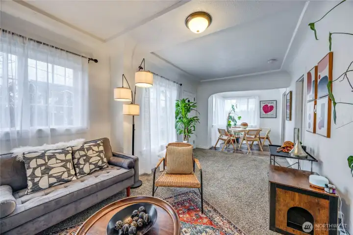 Adorable vintage home in the heart of Bremerton! This charming property showcases wonderful architectural details including coved ceilings, original window casings, and graceful archway entries that highlight its classic character. A decorative shiplap accent wall adds warmth, complemented by inviting carpeting throughout. The updated bathroom and pass-through kitchen featuring stainless steel appliances blend modern convenience with timeless style. Additional perks include a one-car garage and generous storage space beneath the home. Outside, enjoy a nicely sized yard perfect for entertaining, off-street parking, or even RV space. And the location truly shines — just minutes to the Bremerton ferry, Puget Sound Naval Shipyard, and Olympic College. Sold AS IS - seller will make no repairs