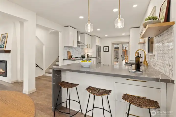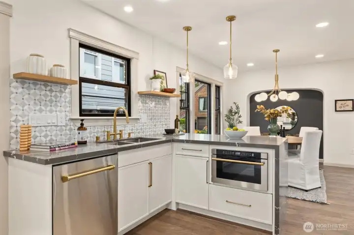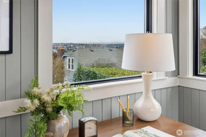Queen Anne brick classic, fully updated for today’s modern lifestyle. Meticulous renovations completed with permits — new electrical, plumbing, heating and air conditioning, windows, roof, and interior finishes. Timeless architectural features preserved as the floorplan is intelligently modernized. 2512 Nob Hill Ave N offers 2,500 sq ft of comfortable living across four bedrooms and three bathrooms, plus a crow’s-nest office with a balcony and views of the Cascade Mountains. The reimagined main level showcases an open floorplan and French doors to the backyard for seamless indoor/outdoor entertaining. Living room captures views of the Ship Canal and Olympic Mountains. Main floor includes one bedroom and a full bathroom. Upstairs finds a primary ensuite bedroom with even better views and a second bedroom. A fully finished basement adds a fourth bedroom, a bathroom, a laundry room, and a spacious family room. Nestled on a charming street in upper Queen Anne with an exceptional location — just a 0.5-mile stroll to shops, restaurants, grocers, and a host of popular amenities. 1-car attached garage plus additional driveway parking. Convenient access to Highway 99 for an effortless commute to downtown Seattle or SLU. Your urban oasis awaits — don’t miss this extraordinary opportunity to live in the heart of Seattle’s most vibrant neighborhoods!