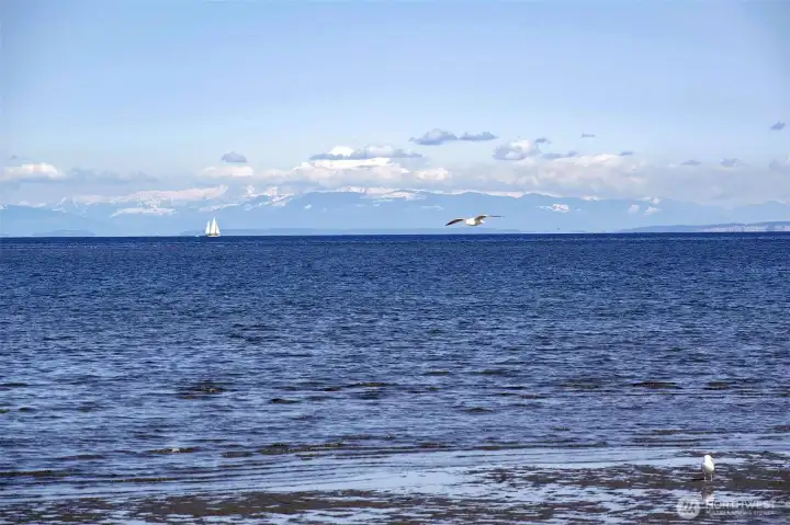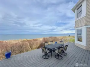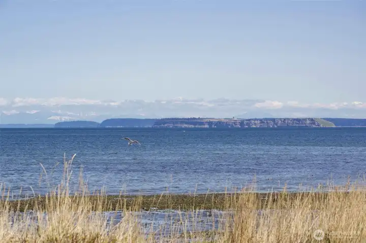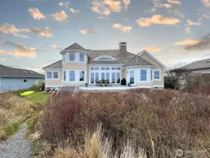 Set directly on the beach along Dungeness Bay, this front-row waterfront home is widely described as one of the most exceptional properties and locations in Sequim. The setting is profoundly tranquil, with unobstructed water and mountain views that span the Bay, Strait of Juan De Fuca, the Olympics, the Cascades, Mount Baker, The San Juan's, British Columbia, and the Dungeness Lighthouse, creating a backdrop that feels both expansive and serene. Located within a private residential enclave of just 14 homes and more than a mile from the nearest county road, the property offers rare seclusion and quiet, broken only by waves, wildlife, and the rhythm of the tide. An irreplaceable coastal retreat defined by privacy, natural beauty, and timeless appeal. Immediate access to crabbing, fishing, & kayaking right from your doorstep. This Robert A.M. Stern inspired home has soaring 20 foot ceilings, Huge open floor plan, impressive floor to ceiling windows with French doors that open to a spacious deck, Luxurious Chefs Kitchen, Interior Greenhouse, 3 Car Garage, Primary and Junior Guest Suites, with office/den on the main floor. Only 2 hours from Edmonds and Seattle.