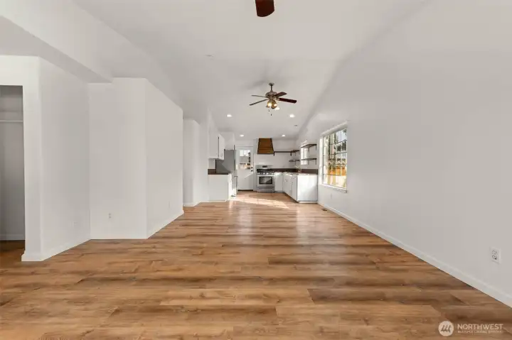 Fantastic opportunity in the heart of Yelm! This charming 3-bedroom rambler sits proudly on a desirable corner lot with a fully fenced backyard—perfect for pets, play, or entertaining. Inside, you’ll find newer flooring in the kitchen and dining area, setting the stage for easy updates and value-add potential. This home is packed with possibilities and ready for your vision!Lovingly maintained and tucked away in the sought-after Kingsview community on a quiet cul-de-sac, this home offers an open, inviting floorplan with upgrades throughout. Enjoy a formal dining space just off the kitchen, a spacious living room, and stylish laminate hardwood flooring that flows through the home. A convenient hallway storage closet adds everyday functionality, while the large, private backyard features garden space ideal for relaxing or growing your own oasis.Best of all, you’re within walking distance (about a mile) to downtown Yelm—shopping, schools, entertainment, golf, trails, and parks are all right at your fingertips. With easy access to JBLM, Olympia, and Lacey, plus NO HOA, this is a home that delivers location, comfort, and opportunity all in one. Don’t miss your chance to make this one yours!