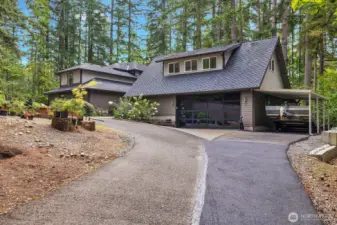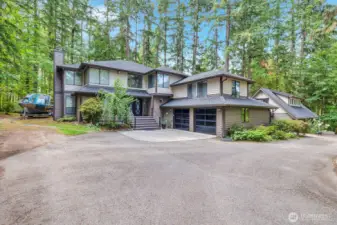 Welcome to your own oasis. Tucked back away from the street, beautiful custom built/designed home. With your circular driveway, 2 story Shop with 1300 sq ft, 2 car garage. Includes a covered car port and plenty of RV/Boat parking. Your 3580 sq ft home includes custom designed kitchen, double ovens, new windows and French doors out to your covered back deck. Formal living room and dining room, office and half bath on first floor. Step downstairs to your vaulted ceiling family room/theatre room. Upstairs to your large bonus room/bedroom, and up again to your 3 bedrooms. Master suit and Master bath, 2 bedrooms and 1 full bath, all on the top floor. Enjoy your whole house water filtration system, 50 year roof completed in 2020. Greenhouse with electricity in the backyard and large garden beds in the front. Enjoy your fully fenced small orchard with apple and cherry trees and plenty of parking!