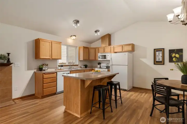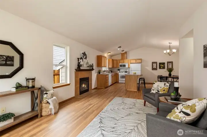 Happy 2026 ! Hello to owning a turn-key one story home with 3 bedrooms, 2 full baths, Vaulted Ceilings, Natural Gas Heat & Fireplace ++ a Oversized 2 Car Garage with opener and a huge 40' driveway !! Open living space with new solid flooring thru-out the Living & Dining, Kitchen, Hallways, and 3rd Bedroom. Freshly painted interior and updated landscaping makes this home look and feel like a brand new! Bring your puppy... Fully fenced/gated backyard for maximum privacy. All appliances stay... Open living space from the Kitchen with a window over the sink. Dreaming of extra shop space? Set up your tools in the large shed in back, complete with power and a concrete floor - perfect for projects, & hobbies. -- Needs some TLC but totally functional. No HOA and No Dues! Super location near Olympic College and Bremerton High School. Less than 1/2 mile to PSNS and Seattle Ferry. Natural Gas Hot Water & Freshly serviced Furnace in the garage. Underground Power serves this large 7405 SQ FT Lot. Home is physically staged. Virtually staged bedrooms. The Primary Bedroom overlooks the backyard (perfect for upgrading to a glass door & deck in the future) and boasts a full bath and walk in closet. Don't miss this one !!