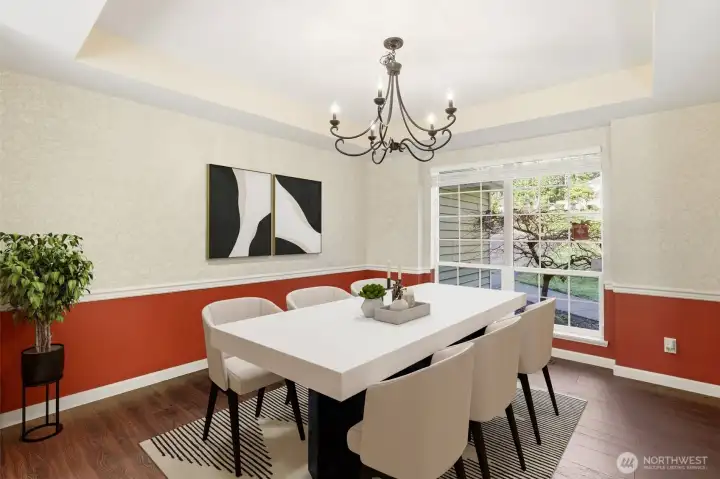 Bathed in natural light, this beautifully appointed residence showcases an open floor plan designed for effortless living and refined entertaining. The well-equipped kitchen features sleek stainless steel appliances, while a formal dining room provides an elegant setting for hosting. A dramatic living room impresses with a statement fireplace and soaring vaulted ceilings, and a spacious family room offers an additional retreat for relaxation. The private primary suite serves as a serene sanctuary, and the expansive backyard creates an exceptional outdoor experience, highlighted by a fire pit—perfect for intimate evenings or sophisticated gatherings.