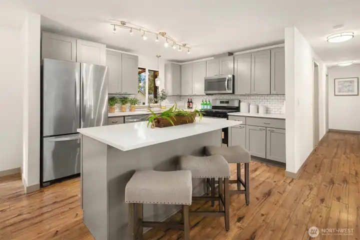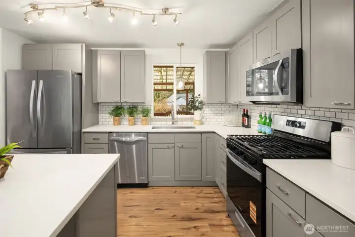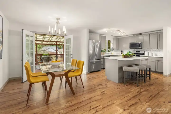 Beautifully remodeled residence situated on a large, level lot in the highly desirable Silver Firs neighborhood. The light-filled upper level welcomes you with an open-concept design featuring a spacious living room with a cozy wood-burning fireplace, seamlessly flowing into a modern kitchen equipped with a center island, sleek shaker cabinetry, and stainless steel appliances. The adjacent dining area opens through elegant French doors to a covered deck, perfect for year-round gatherings and entertaining. The primary suite offers a tastefully updated 3/4 bath, complemented by two additional generously sized bedrooms and a stylish hallway full bath. The expansive lower level includes a comfortable family room with a second fireplace, a guest bedroom, a 3/4 bath, and a laundry room. Enjoy the fully fenced backyard, two-car garage, and ample driveway parking. Additional features include a brand-new hot water tank and easy-care flooring with no carpet throughout. Top rated schools! Conveniently located near I-5, Highway 9, parks, trails, the YMCA, schools, shopping, and dining. A move-in-ready gem in one of Snohomish County’s most sought-after communities.