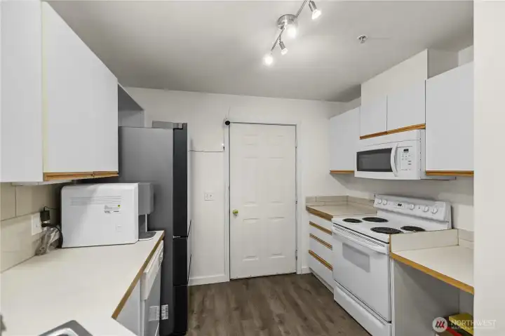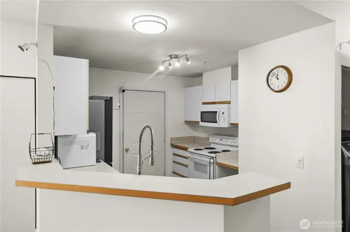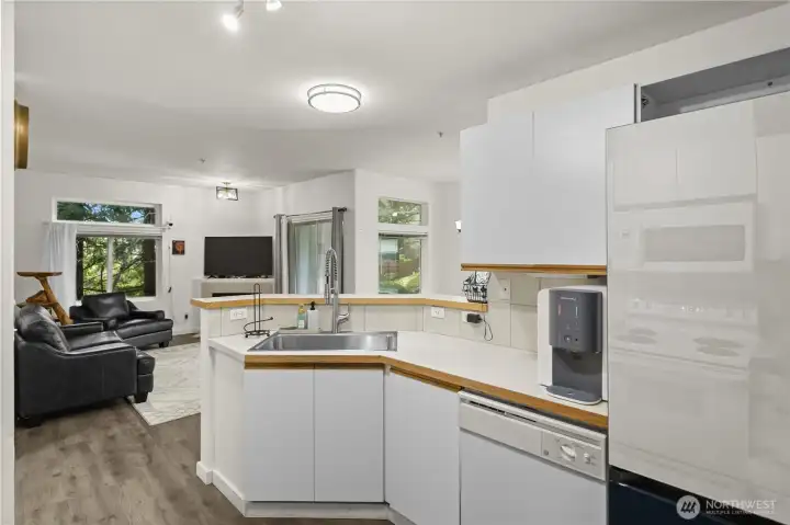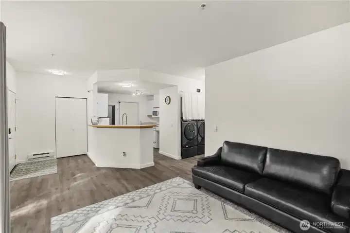 Bright, ground-floor end-unit 2bed 2full bath condo offering a no-stairs layout and private attached garage for easy, convenient living. Open-concept great room features a cozy fireplace and flows seamlessly to a private patio—ideal for relaxing or entertaining. The kitchen includes ample cabinet space and an eating bar. Spacious primary suite offers a walk-in closet and private bath with double sinks. washer and dryer included. Enjoy community amenities, nearby trails, and a private setting with excellent commuter access. A perfect blend of comfort, convenience, and lifestyle.