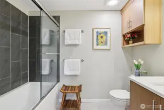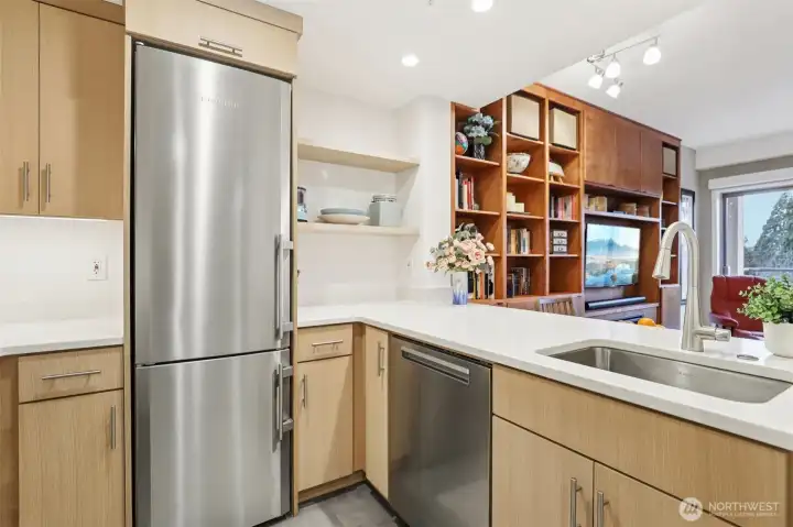 Light, bright, & meticulously cared for, this stunning condo offers picturesque views of Esther Short Park from a private balcony—an ideal spot to relax or entertain. The spacious, upgraded kitchen is both functional & stylish, overlooking into the living area featuring custom built-ins that add character & thoughtful storage. Engineered oak flooring runs throughout the home, complemented by all-new lighting that enhances the airy, welcoming feel. The layout includes 2 generously sized bedrooms & 2 beautifully remodeled bathrooms, offering comfort & privacy. A rare opportunity to enjoy refined living with iconic park views in the heart of it all.