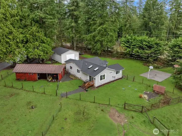 Welcome to Happy Hollow Farm! Charming country retreat on 5.15± acres, ideally located minutes from Downtown Duvall and Carnation. This special property offers a rare opportunity to enjoy refined rural living with the flexibility to create your own mini farm or equestrian haven. One-level rambler features 3 bedrooms, 2 baths, an office/flex space, and 1,460± sq ft of comfortable living space. The 2014 addition to the original home added expanded living space, enhancing the home’s layout and comfort while maintaining its country charm. Ideal setup with a high-quality 3-stall horse barn, including a heated tack room and potential ADU space. Fenced pastures and a round pen, ideal for riding, training, or turnout. Oversized detached 2-car pull-through garage plus an additional carport outbuilding provide ample space for vehicles, farm equipment, and recreational toys. The grounds feature established raised garden beds and fruit trees, perfect for those seeking a hobby-farm lifestyle, farm-to-table living or a self-sustaining lifestyle. The usable acreage offers space to grow, cultivate, and enjoy the outdoors while maintaining privacy and tranquility. Pre-inspected.