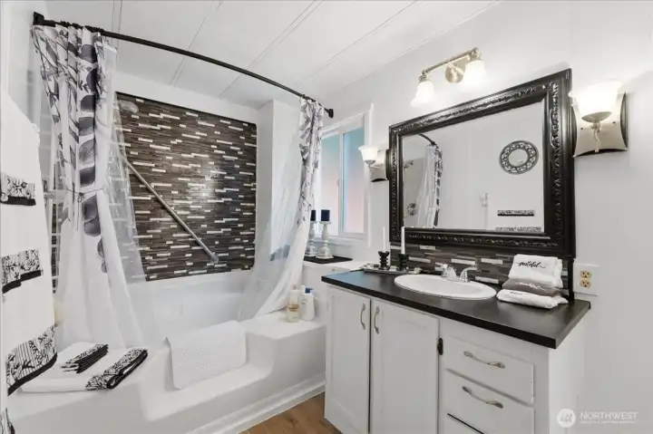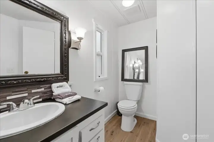 Nestled in a quiet lot in The Cedar Glen 55+ Mobile Home Park, this charming manufactured home boasts a brand new composite roof and fully fenced yard! The large lot is landscaped and the private backyard looks out into a forest of trees behind the home. The expansive entryway yields additional bonus space for this inviting 2 bedroom, 2 full-bathroom home. This unit boasts new paint, in and out, and new flooring throughout. A large storage shed, with electricity, sits at the end of the driveway- perfect for an office or studio space as well! Conveniently located close to the Highway and both downtown Poulsbo and Bainbridge Island- this quiet, updated unit, has it all. Make this yours today!