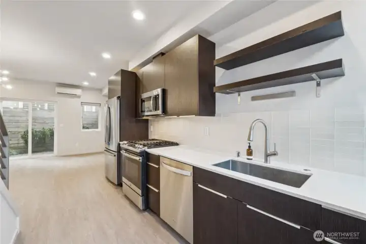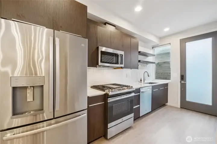 Welcome Home! Ideally situated just minutes from local shops, dining, and the Junction, this newer-built home offers modern comfort in a vibrant setting. Enter on the main level where a bright, open floor plan welcomes you with seamless flow between living, dining, and kitchen spaces. The beautifully appointed kitchen features stainless steel appliances, generous cabinetry, and ample prep space, perfect for everyday living and entertaining alike. Just off the living area, a small fenced patio provides a private outdoor retreat—ideal for morning coffee, pets, or a cozy seating area. The second floor includes a versatile bedroom, a den or flex space ideal for a home office or creative studio, and a full bathroom thoughtfully designed with contemporary finishes. Retreat to the spacious top-floor primary suite, complete with ample closet space and a spa-inspired bath that creates a peaceful escape at the end of the day. Take gatherings outdoors to the rooftop deck, offering partial water views along with gas and electrical hookups for effortless entertaining. A reserved parking space adds convenience and ease to this exceptional opportunity to enjoy stylish living in a sought-after location.