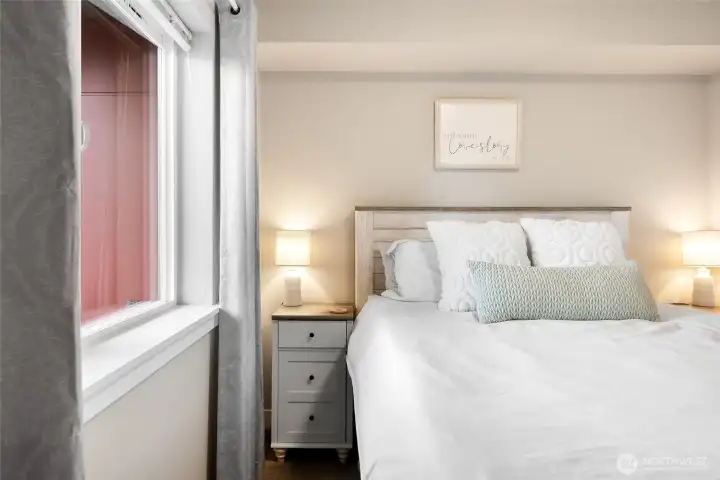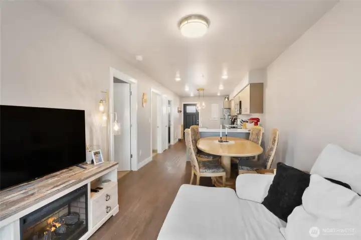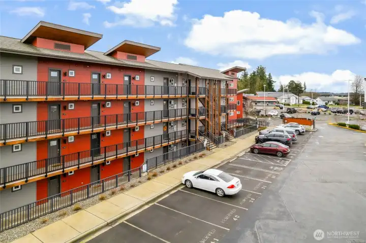 Modern design meets an unbeatable downtown location in this two-bedroom, third floor condo. Walkable to shops, dining, and daily conveniences, this home is an ideal opportunity for down-sizers, first-time buyers, or investors seeking low-maintenance living in the heart of Lynden. Thoughtfully designed with an efficient floor plan, this stylish condo is enhanced by upscale amenities and refined luxury touches throughout. The kitchen showcases high-end cabinetry and premium countertops, complemented by stainless steel appliances, and a functional island ideal for everyday living and entertaining. Additional upgrades—rarely found together at this price point—add to the home’s exceptional appeal. Enjoy the ease and convenience of a designated covered parking space with additional storage. Water, sewer, garbage, and exterior maintenance included in your HOA.