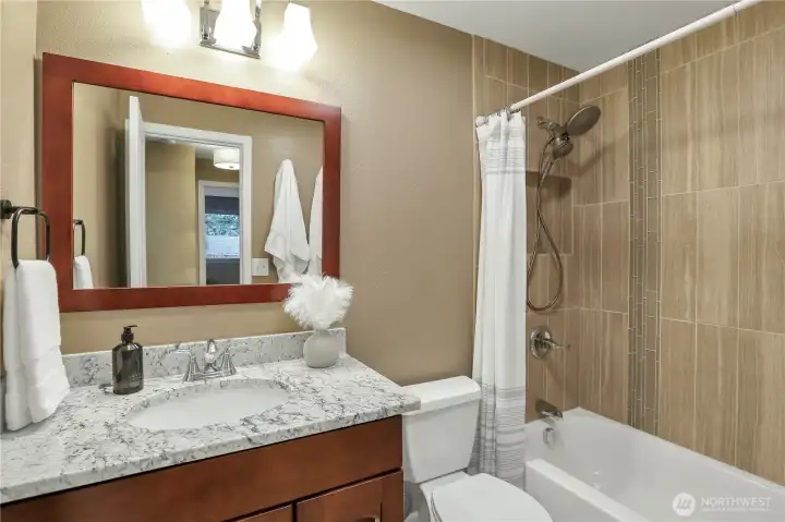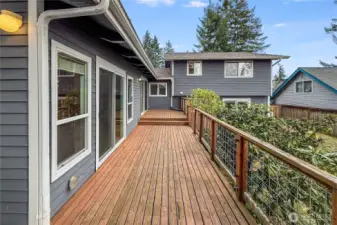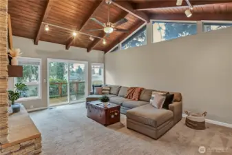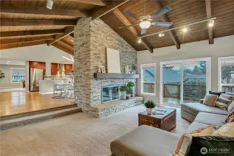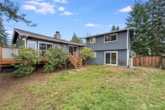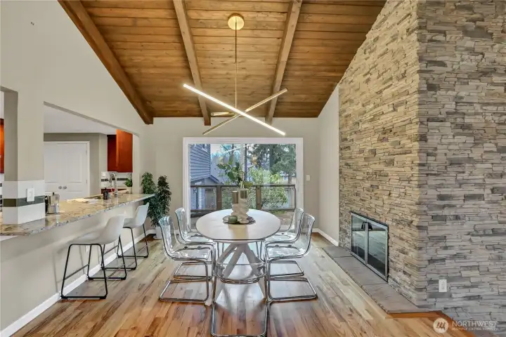 Want more living space? Well maintained tri-level home nestled in the established Fairwood neighborhood of Renton offers spacious, light-filled living and a versatile floor plan designed for comfort and entertaining. The main level welcomes you with a bright living room featuring a gas fireplace and large window that flood the space with natural light. Enjoy the chef's kitchen that's equipped with granite countertops, stainless steel appliances, ample cabinetry, and generous prep space for everyday cooking or hosting gatherings. Unlike any other tri-level style home you've seen, this one has tall vaulted ceilings and a shared two sided gas fireplace in the open dining and casual living space. Dual sliding glass doors lead to the deck overlooking a fully fenced, level backyard - great for outdoor gardening or play. Upstairs primary bedroom features an attached bath while two additional bedrooms share a full hall bath. Lower level offers a flexible living area or potential fourth bedroom, complete with a beautifully remodeled spa-like bathroom. Recent updates: high efficiency heat pump for heating & cooling, 200amp electrical panel, 50 gallon water tank, and 30 yr architectural composition roof. Additional features include an attached two-car garage with laundry and handy sink plus shed in backyard. Convenient to Lindbergh High School with indoor pool, Fairwood amenities, golf courses, and SeaTac airport.