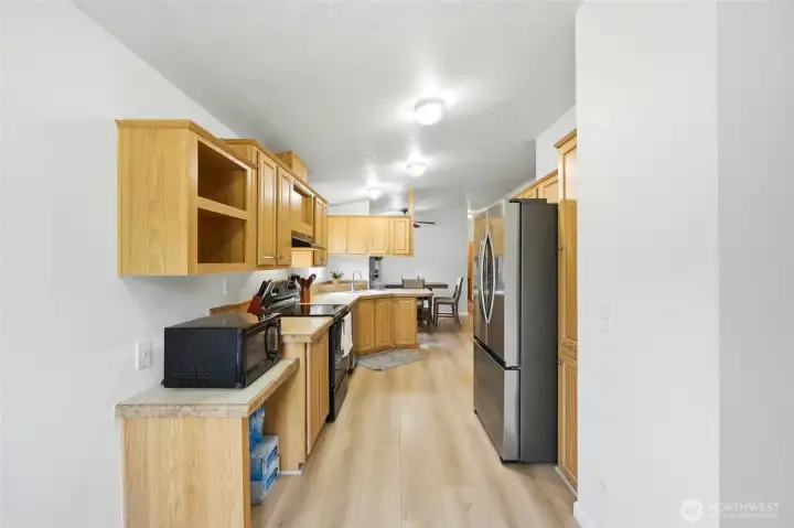 Welcome to this thoughtfully laid out 3 bed, 2 bath home where comfort and care are immediately felt. Oak engineered hardwood floors extend throughout, creating a light-filled living area that flows seamlessly into the dining space and a well-designed kitchen offering abundant cabinetry and storage with newer appliances, perfect for both everyday living and entertaining. Step outside to brand new decks that invite morning coffee or peaceful evenings surrounded by nature plus a cozy firepit. Brand new windows throughout with warranty, new rain gutters, this year, and recently serviced HVAC, allowing you to move in with confidence. Minutes to the conveniences to downtown Oak Harbor, the Naval Base, and ocean front beaches. Home is on a 2 bed septic. This home offers the perfect blend of style, function, and everyday ease in a desirable Oak Harbor setting.