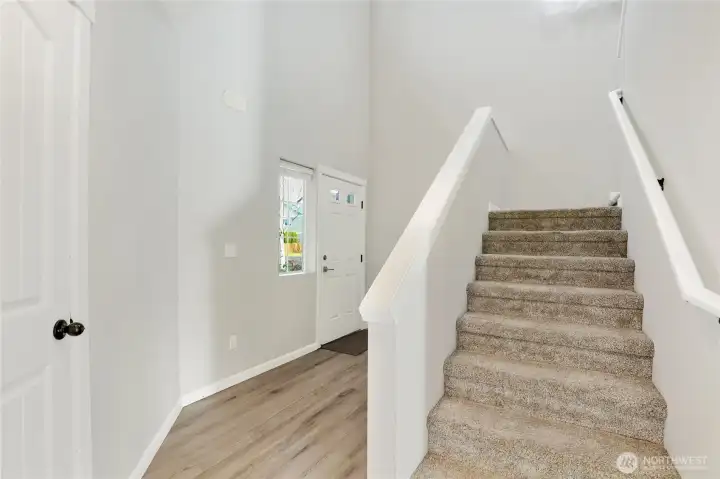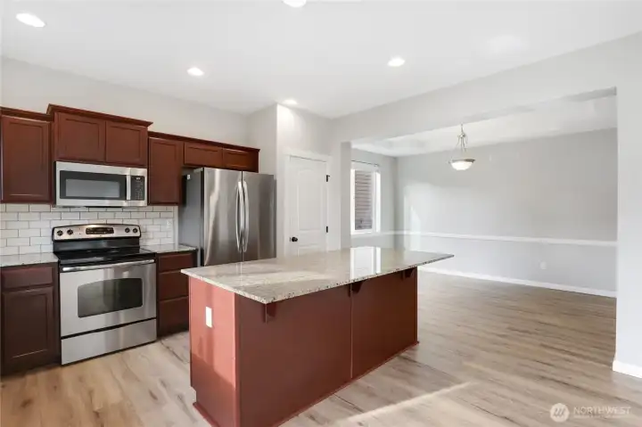 Don't miss this beautiful 4-bedroom, 2.5-bath home in desirable Woodbury Crossing. The main level welcomes you with a spacious entry, durable laminate flooring, crisp white trim, and a large formal dining room perfect for gatherings. The kitchen features an island, granite countertops, and a generous pantry, opening to a bright living room with a cozy gas fireplace—ideal for relaxing evenings at home. Upstairs, you'll find a versatile loft area, three spacious bedrooms, a full bath, and a convenient laundry room. The primary suite is a true retreat, offering a five-piece bath with a soaking tub and a walk-in closet with a secondary closet. This home also includes a two-car garage with roof racks, a tankless water heater, a gas furnace, A/C, and all appliances included. The fully fenced backyard features a patio and plenty of space for entertaining or enjoying outdoor time. Conveniently located near schools, shopping, entertainment, Hwy 101, I-5, and JBLM.