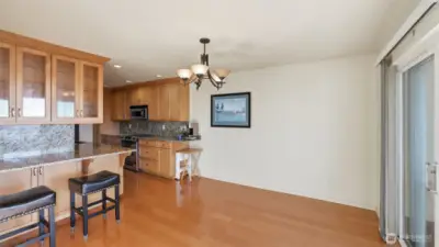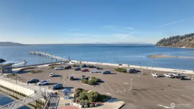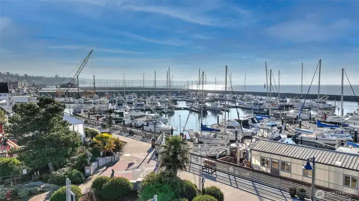 Wake up to salt air, sunsets, and the rhythm of the marina—this is waterfront living the way it’s meant to be. Nestled in the heart of the Des Moines Marina district, this beautifully updated condo places you just steps from the boardwalk, pier, beach park, dining, and vibrant community events. Inside this 2-bedroom, 1.75-bath, 1,248 sq ft residence light pours through expansive windows, framing sweeping Sound and mountain views and setting the tone for relaxed coastal living. The open living and dining spaces flow effortlessly to a generous west-facing deck—your front-row seat to unforgettable sunsets, evening grilling, and entertaining with friends. A cozy gas fireplace anchors the living room, while the kitchen blends style and function with stainless steel appliances, granite counters, and ample storage. Retreat to the spacious primary suite with a walk-in closet and modern ¾ en suite bath with updated finishes. A second bedroom and full bath provide flexibility for guests or office space. Additional highlights include a heat pump for efficient heating and cooling, in-unit laundry, secure garage parking plus an additional exterior space, and dedicated storage. Boutique building, gated entry, elevator access, and easy access to I-5, light rail, transit, and quick commutes to Seattle or Tacoma. Coastal convenience, lifestyle, and views—this is Des Moines living done right. Come live where others come to unwind.