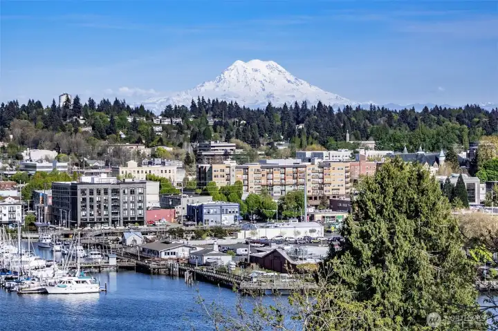 The mountain is out. Step into your private retreat with unparalleled views of Mount Rainier, Puget Sound, downtown Olympia, and the Capitol. Enjoy breathtaking scenery from multiple rooms, including the studio, dining room, kitchen, expansive deck, and primary suite—perfect for entertaining while soaking in the ever-changing landscape. This generously sized 4-bedroom home is filled with gorgeous natural light and east-facing views. A newly remodeled studio offers a separate entrance, kitchen, private deck, bathroom, and laundry—ideal for guests, multi-generational living, or additional rental income! Schedule your showing today!