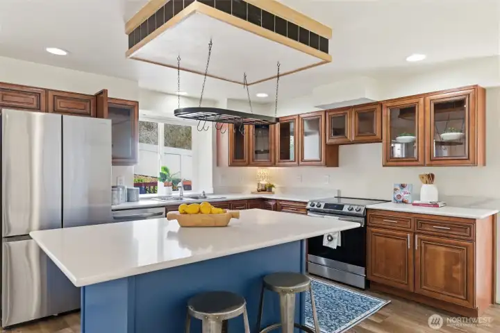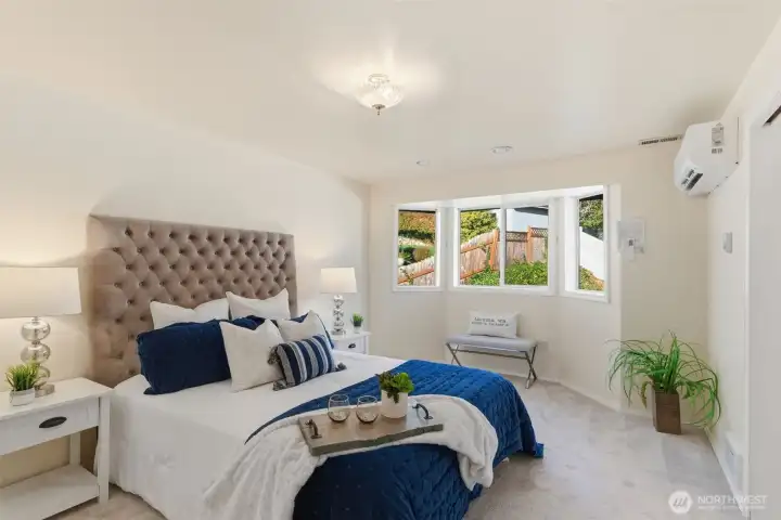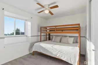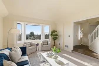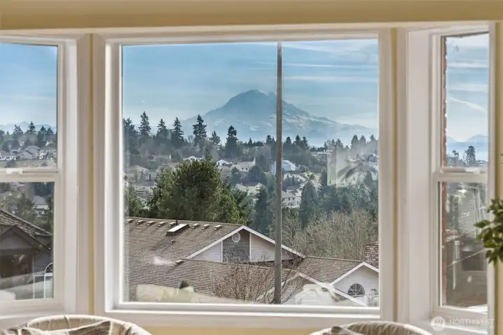 Location truly shines with a large corner lot, and views of the beautiful Mt. Rainier scenery in this spacious 4-bedroom, 2.5-bath NW Contemporary home. Thoughtfully designed at 2,200+ sq ft, the layout offers both comfort and flexibility with formal living and dining spaces, plus an open kitchen and family room with cozy fireplace that's ideal for everyday living and entertaining. Kitchen complete with dining nook, a large useful island with bar seating, walk-in pantry, beautiful cabinetry, stainless appliances, and charming pot rack. Large windows fill the home with natural light, while the expansive deck extends your living space outdoors—perfect for gatherings, relaxing, or enjoying the surrounding scenery. Upstairs, the generous primary suite features a 5-piece bath and ample closet space, accompanied by three additional bedrooms and a full bath. Great sized bedrooms with ample closet space + mini-splits for year round comfort. The attached 2-car garage provides excellent storage, and the corner lot offers added privacy with a fenced yard. Located near Crescent Heights Elementary, Meeker Middle School, North Shore Golf Course, parks, nearby community center, and convenient commuter routes—this is a rare opportunity to own in a sought-after Browns Point area with space, views, and the chance to make it your own.