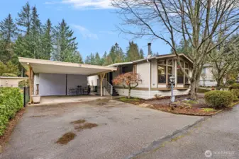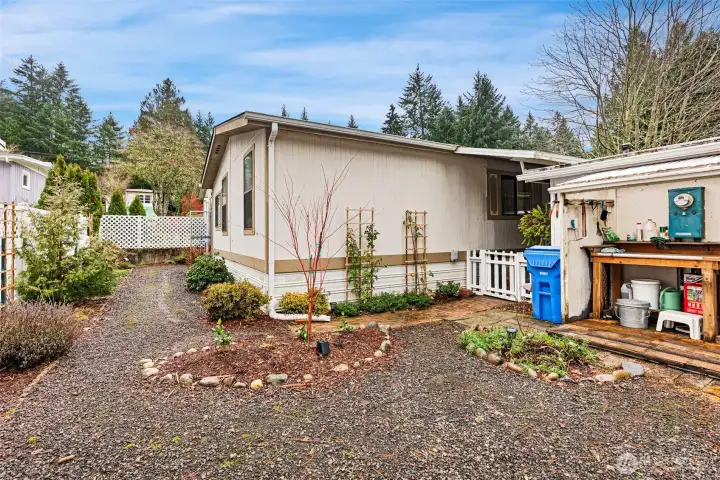 Minutes from downtown Gig Harbor, this home is located in Hillcrest Manufactured Home Park, a 55+ community. This two-bedroom home offers 1,148 sq ft of living space. The entry opens into the living room featuring a cozy wood stove. Beyond that is a dining area connected to the open and bright kitchen. The primary bedroom features a large ensuite bath with a soaking tub. Lots of storage in the double closets. A second bedroom and a ¾ bath provide comfortable accommodations for guests. A dedicated laundry room opens to a pet run in the side yard. A heat pump provides AC for hot summer days. Space rent covers water, garbage, and septic. Very close to the popular shopping corridor - Target, Costco and etc.