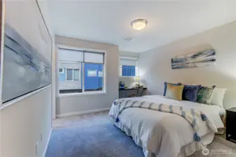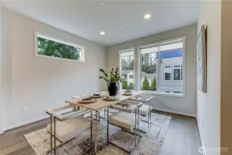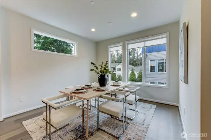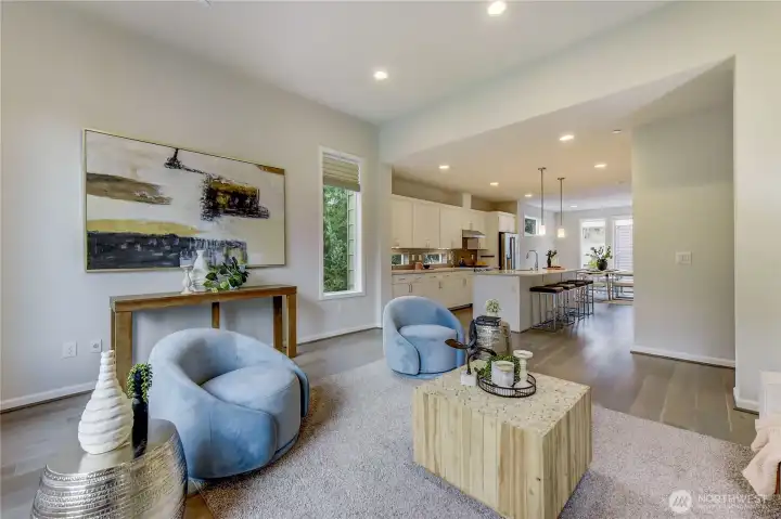 Stylish end-unit townhouse in the sought-after Kirkland/Juanita area, offering privacy and the feel of a single-family home with peaceful tree views. This modern open-concept design showcases upscale finishes and is perfect for entertaining. The gourmet kitchen features quartz countertops, high-end stainless-steel appliances including a gas range, a large center island, and pantry cabinetry. Light-filled living room with soaring 11’ ceilings and a spacious dining area. Enjoy outdoor living on the expansive rooftop deck equipped with gas, water, and power. The two-car tandem garage provides extra storage space. Mini-split systems deliver efficient air conditioning throughout, with an additional unit added to the second bedroom for enhanced comfort. Conveniently located near Lake Washington, Juanita Beach Park, local dining, shopping, and the many walking and hiking trails at the O.O. Denny Park Loop Trail. Top-rated Lake Washington schools. No rental cap offers excellent investment potential. Plenty of guest parking. Fresh interior paint makes this home move-in ready.